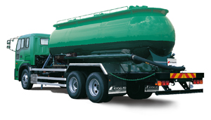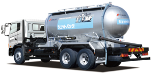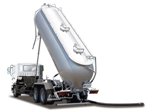 Pneumatic bulk carrier perfects for bulk transport of cement, lime, other powdered and granulated materials. For unloading, two methods are availabele : the air-sliding type - for cement, and the triple-tank type - suitable for cement, powdered and granulated materials. Various types of carriers are available ; for example, a dumper type and a trailer type. Also gaining in popularity is the high-tensile steel tank model, enabling greater carrying capacity.