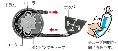 打設現場へ圧送(圧力をかけて送ること)するポンプを装備したはたらく自動車です。
