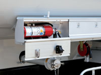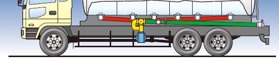 荷おろし中に緊急事態が発生したとき、レバーを引けば全室のタンク底弁を一度に閉鎖することができます。また、車両火災の時はヒューズが切れ、自動的に底弁が閉まります。