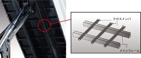 デッキ骨組みはメインフレームにクロスメンバを貫通させた当社独自の井桁構造を採用しています。衝撃に強く、耐久性を大幅に向上させました。